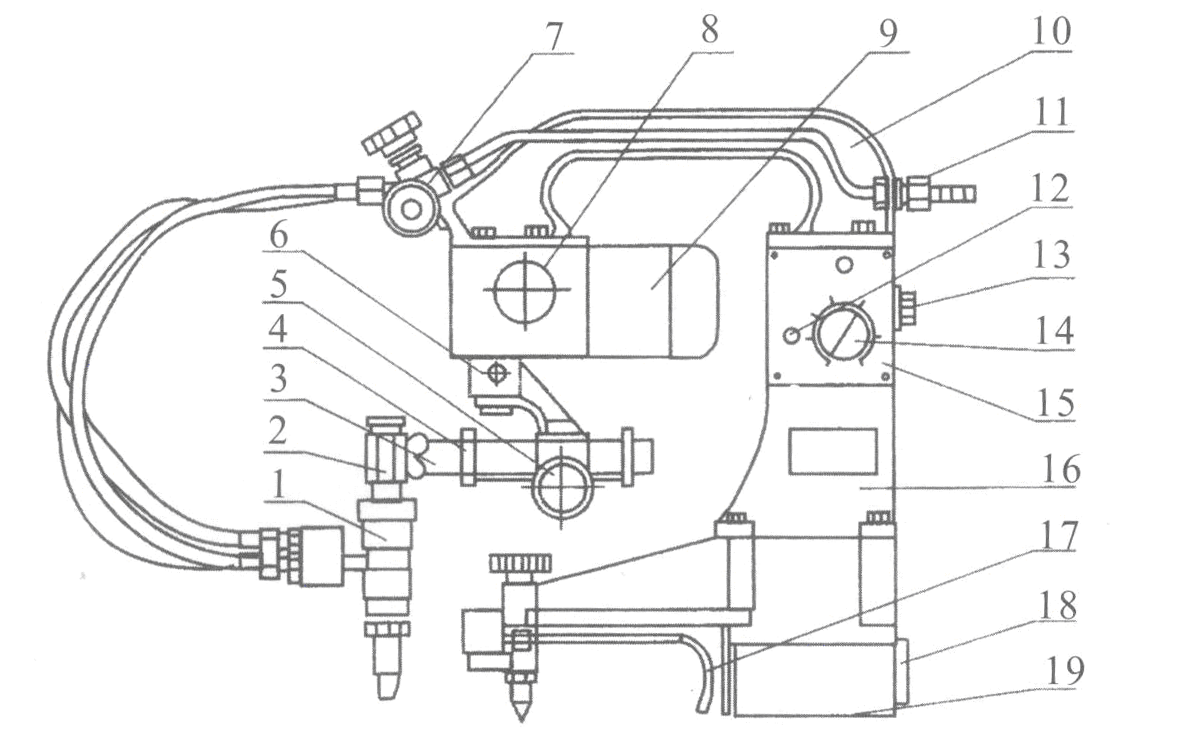 1.割炬 7.橫梁 13.磁鐵開關(guān)