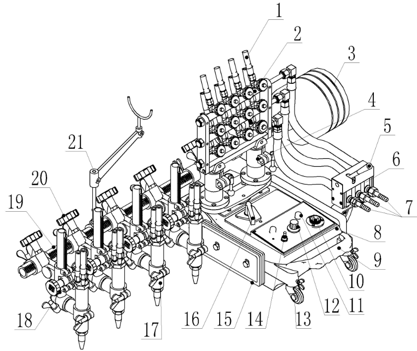 l GCD5-100型多頭直條切割機(jī)有5組有效割炬。