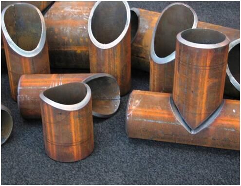 設(shè)備采購(gòu)回來(lái)并安裝就位后,首先由技術(shù)人員將隨設(shè)備附帶的操作程序安裝在電腦上,在進(jìn)行生產(chǎn)前將相關(guān)數(shù)據(jù)輸人事先安裝好的操作程序,程序設(shè)定操作流程如下:選擇要切割的部件方式_選擇支管連接類(lèi)型_選擇支管端頭切割方位_輸出數(shù)據(jù)_查看三維效果圖一填寫(xiě)相關(guān)數(shù)據(jù)。切割數(shù)據(jù)編制完成后,將輸出的數(shù)據(jù)用U盤(pán)拷貝至現(xiàn)場(chǎng)的切割設(shè)備,進(jìn)行數(shù)控切割作業(yè)。每次導(dǎo)出數(shù)據(jù)為兩組,一組為主管切割數(shù)據(jù),另一組為支管切割數(shù)據(jù),在切割時(shí)分別選擇不同的切割程序就可以完成相關(guān)切割作業(yè)。本實(shí)驗(yàn)采用等離子進(jìn)行切割作業(yè)。以材質(zhì)為Q235B,0219 mm x 6 mm的焊接鋼管為例,根據(jù)實(shí)驗(yàn)記錄數(shù)據(jù):采用手工方式進(jìn)行一道馬鞍口的切割作業(yè),從劃線(xiàn)、放樣到最后完成切割、修正,至少需要10 min以上的時(shí)間;而采用數(shù)控切割機(jī)切割同樣的一道口,編程時(shí)間為110 S,數(shù)據(jù)拷貝78 S,相貫線(xiàn)切割時(shí)間58 S,合計(jì)246 S,而且編程一次可以完成相同管件的連續(xù)切割作業(yè)。由此可以看出,采用管道數(shù)控切割設(shè)備大大地提高了切割效率。采用數(shù)控切割機(jī)切割后的焊口尺寸精確,可以達(dá)到0.001 mm(國(guó)標(biāo)一般要求0.1 mm,高出國(guó)標(biāo)100倍)。切割的成品不但一次成形,而且成型美觀(guān),不需打磨,省去了后續(xù)人工打磨程序的同時(shí),也減小了誤差的產(chǎn)生。數(shù)控切割機(jī)設(shè)備操作非常簡(jiǎn)便,只需技術(shù)人員將編好的切割數(shù)據(jù)拷貝至切割設(shè)備,由1名火焊工人就可完成后續(xù)的切割作業(yè)。