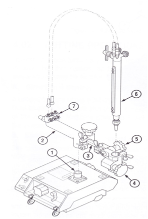 (2)越過(guò)單頭割炬底座,并用定位螺釘將其固定。齒條手柄組件可以自由地旋轉(zhuǎn),直到夾緊螺栓被擰緊。插入齒條組件