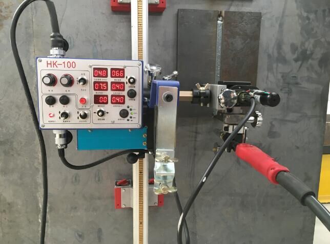 HK-100由小車本體、控制箱,X-Y滑塊,焊槍夾具,導向輪,直線導軌等部件組成。
