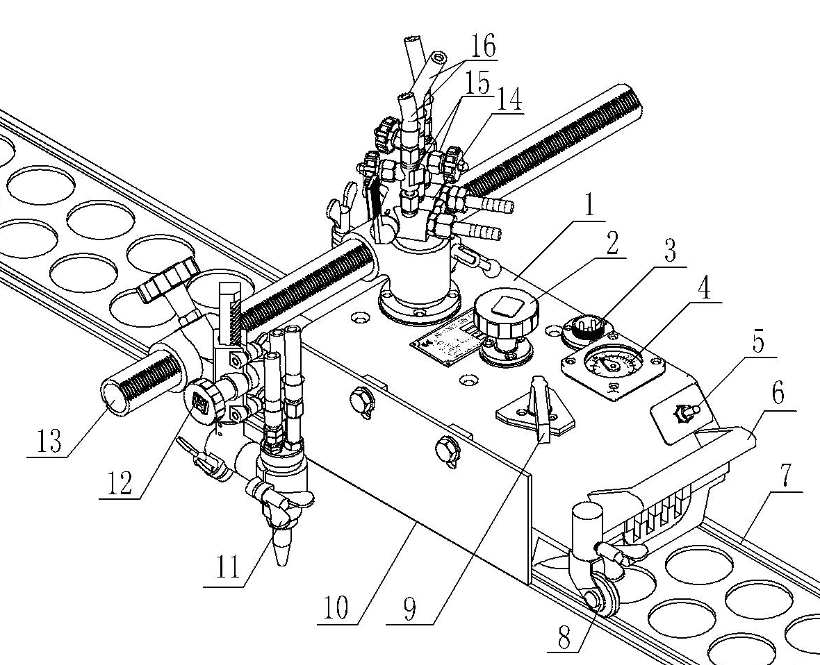 12. 割炬移動(dòng)總成:調(diào)節(jié)割炬的縱、橫向位置。