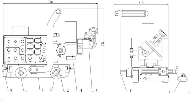 6)磁控手柄:方便小車的安裝和移動(dòng),安裝有永久磁鐵,避免小車脫離焊接線的現(xiàn)象。