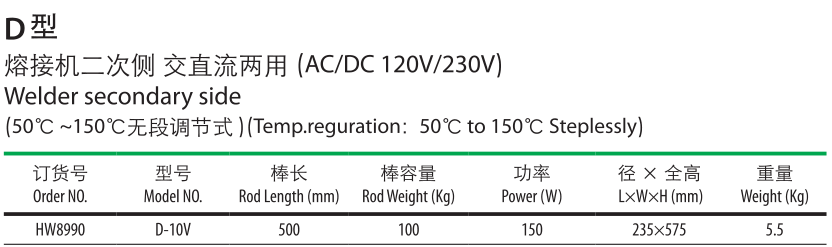 D型熔接機二次側(cè)交直流兩用。