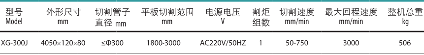 XG-300J系列數(shù)控管板切割機(jī)為3軸的數(shù)控切管機(jī)。當(dāng)設(shè)備離開(kāi)A軸工作臺(tái)時(shí)就是一臺(tái)平板數(shù)控切割機(jī)。